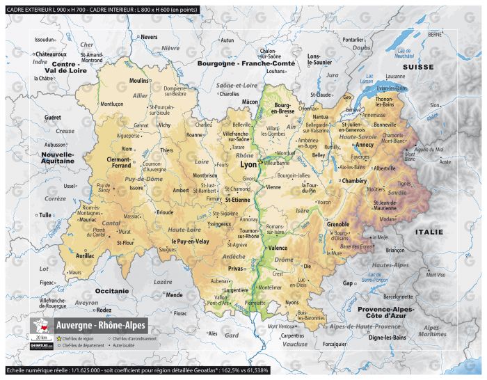 Lʼexploitation massive de cette carte Geoatlas® (carte postale, clip vidéo, affiche, poster, atlas, agenda, calendrier, recueil de cartes géographiques, télévision, film) ou tout projet dont la valeur principale repose sur l'image elle-même est soumis à une autorisation préalable négociée exclusivement avec Graphi-Ogre.